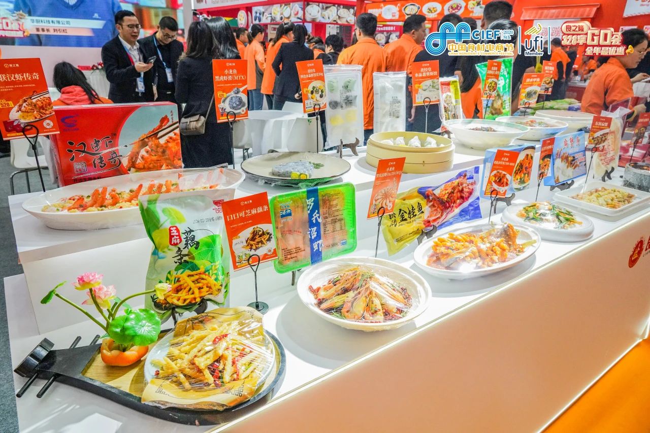 此次菜品展示台,除口口可珍珠藕丸、小龙鱼罗氏沼虾等经典产品外,国联汉虾传奇、小龙鱼松鼠金桂鱼、东海扁蟹、口口可芝麻藕条等24年新品凭借优质的食材源头,鲜嫩、大气的外形及菜式做法收获了一众专业客户的肯定与意向订单!