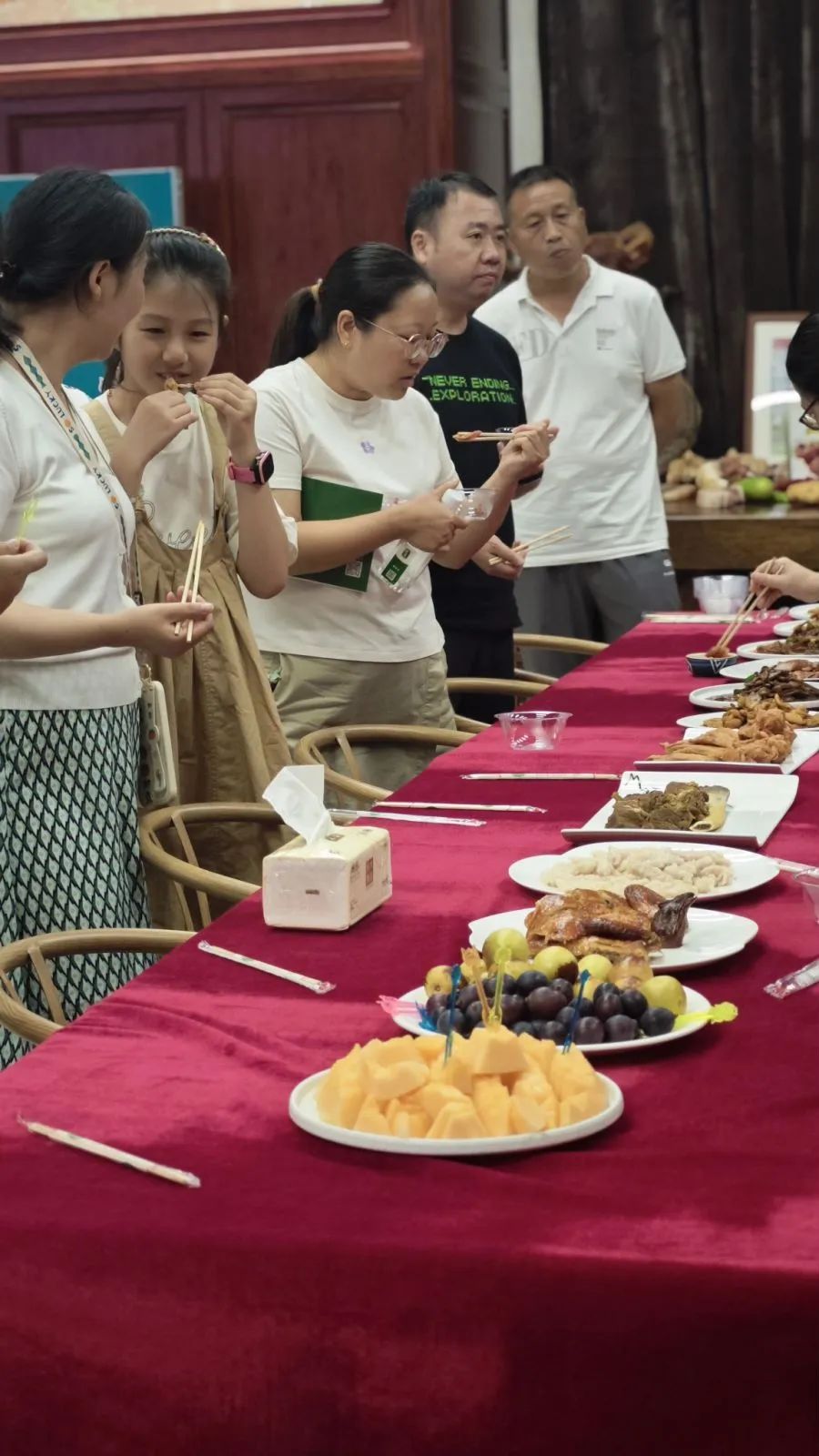为更好的了解产品,游学团在公司领导的引导下,来到产品展示间,品尝多种特色牛肉产品,同时就产品销售、客户服务,以及产品力打造方面,更进一步向公司领导和同事请教学习,获得了许多有益的启示。