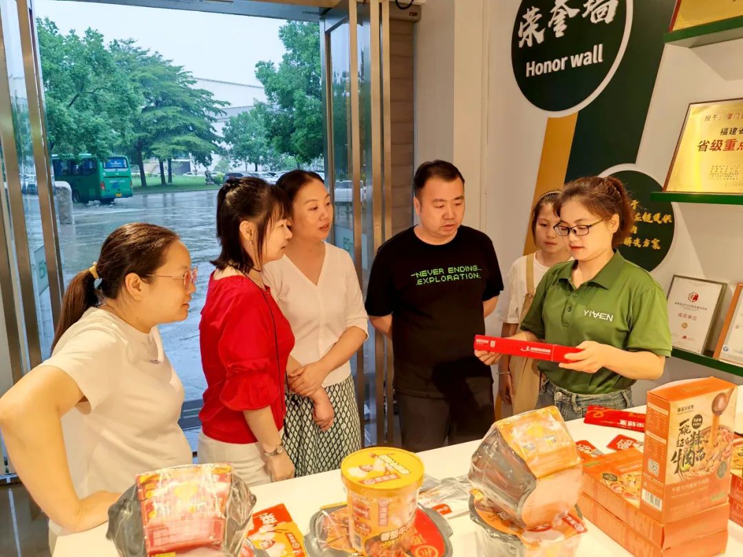 游学团走进绿进集团大楼,首先映入眼帘的是摆放整齐的荣誉墙,“中国驰名商标”、“2022中国预制菜行业年度评选”领军品牌、福建省餐饮烹饪协会优秀伙伴奖、同安区龙头企业…琳琅满目的奖项让大家深深震撼。同时,游学团一行还品尝了绿进爆款“金牌牛力骨”“雪花肉”等预制菜品,并共同探讨预制菜的最新发展趋势和市场需求,探寻多维度销售渠道。